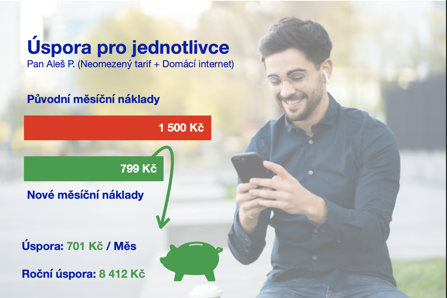 V našem call centru neprodáváme; my šetříme vaše peníze a řešíme administrativu za vás. Naše služby jsou navrženy tak, abyste měli vždy ty nejlepší podmínky, ať už jste jednotlivec, nebo malá firma. Jsme specialisté na vyjednávání nejlepších cen za mobilní tarify, internet a televizi. Přinášíme unikátní, neveřejné nabídky pro jednotlivce i firmy.