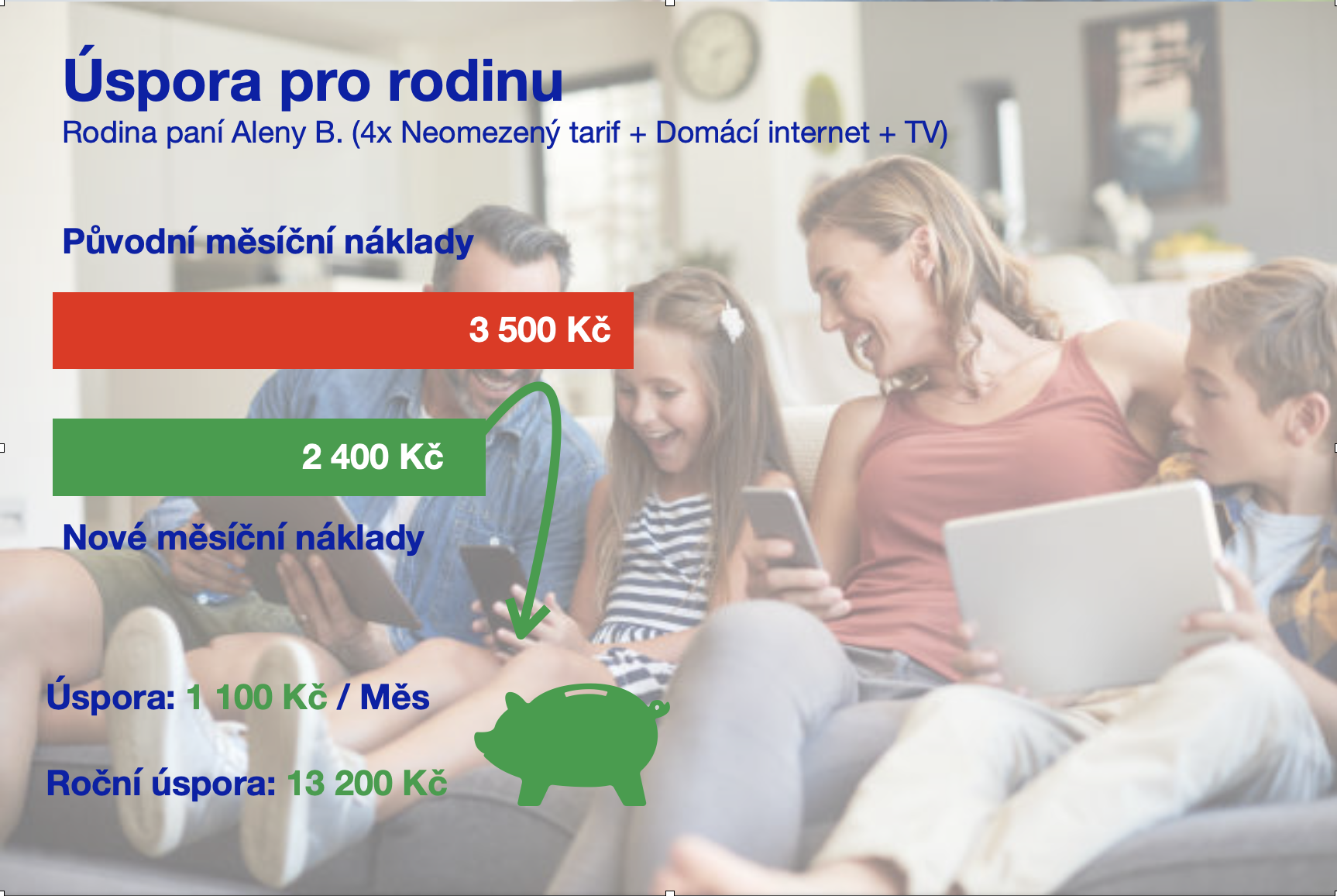 Naše rodinné plány jsou navrženy tak, aby pokryly potřeby více členů domácnosti a zároveň vám umožnily ušetřit na nákladech za telefonní služby. Nechte naše odborníky doporučit optimální řešení pro vaši rodinu.